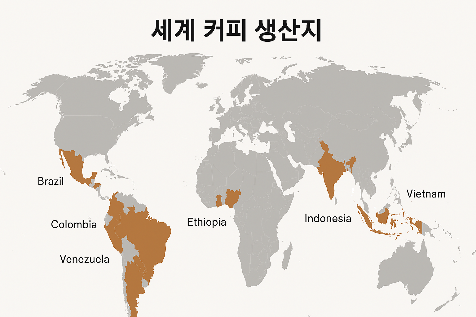 브라질, 베트남, 콜롬비아, 그리고 에티오피아 등이며,